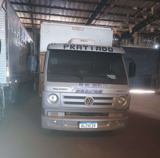 01 (um) Veículo tipo Caminhão Wolkswagen Delivery 9.160, Baú, cor prata, ano 2012 - Placa OLZ5E29, em bom estado e funcionando, pneus meia vida, bancos com pequenas avarias.